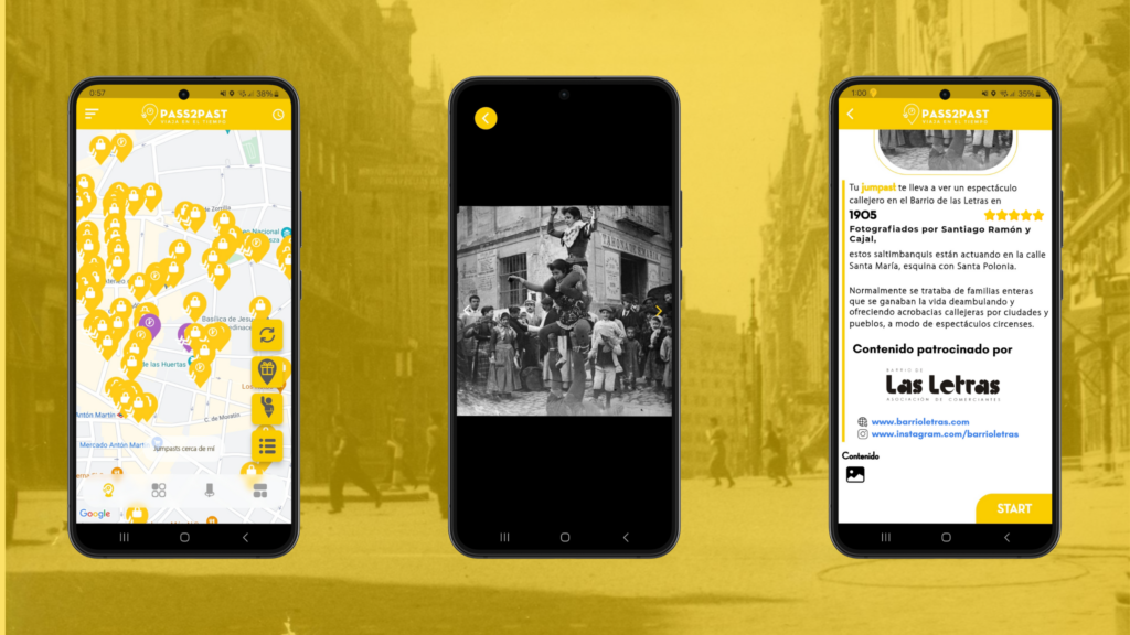 Pass2Past no es solo una app gratuita de turismo cualquiera, es una experiencia inmersiva que transporta a l@s usuari@s al pasado de cada lugar que visitan, convirtiendo cada paso en una aventura a través del tiempo​​. Al utilizar la geolocalización, Pass2Past permite a sus usuari@s revivir la historia como nunca antes, explorando cómo sus destinos lucían en diferentes épocas y descubriendo anécdotas y eventos que marcaron su presente​.